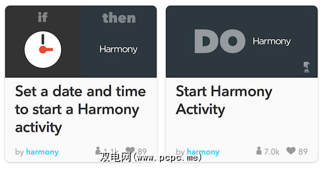 内置到IFTTT中是一些值得考虑的Harmony食谱。例如,使用IFTTT,您可以设置日期和时间来开始“和谐活动",或者提醒您的Sonos玩家每次喜欢的体育队参加比赛时都打开。
