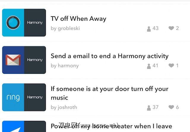 添加或创建IFTTT配方的理想方法是使用IF应用程序。您查找的食谱很可能已经添加。要查找和谐配方,请进入IF应用,然后在屏幕右上方选择配方图标。然后在我的食谱旁边选择 + 按钮。在“建议的服务"屏幕上,选择“和谐"图标。