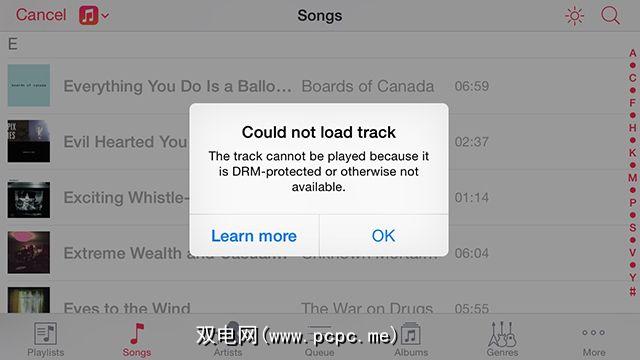 轻按一首歌曲,您会告诉您除非下载它,否则无法播放。下载它,然后重试,您将收到DRM错误-这意味着Apple Music与第三方应用程序尚未集成,但这并不意味着它永远不会发生(就像Spotify一样)。