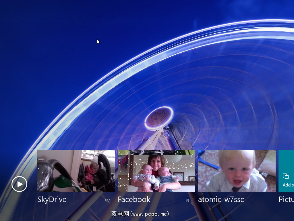 点击“照片"图块将打开图像浏览器,您可以在其中浏览各个目录以找到照片。它们可能存储在本地,SkyDrive或Facebook和Flickr等社交网络上(有关社交网络和Windows 8的更多信息,请参见第7章。)