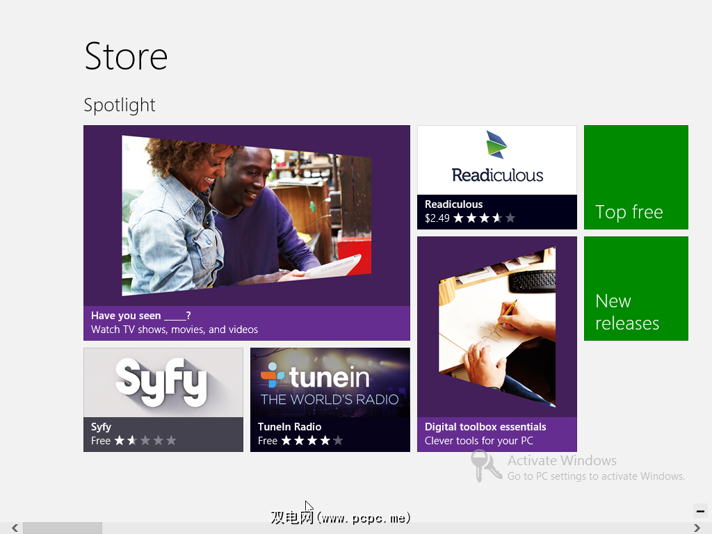 启动商店将提供对一系列免费和高级应用程序和游戏的访问,类似于Apple App Store或Android上的Google Play。这些应用程序和游戏都是专门为Windows 8设计的,这意味着它们将无法通过桌面模式使用。