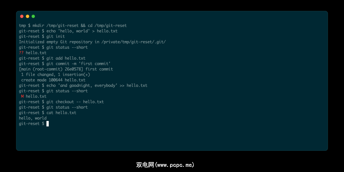 更高版本的 Git 有一个更新的命令:restore。对于我们在这里讨论的简单情况,您可以使用以下等效项。要撤消对存储库的更改:
