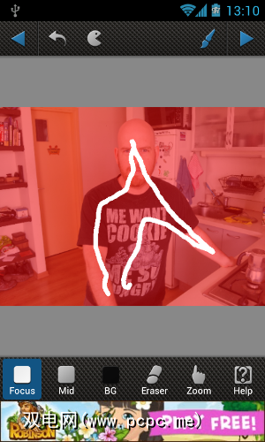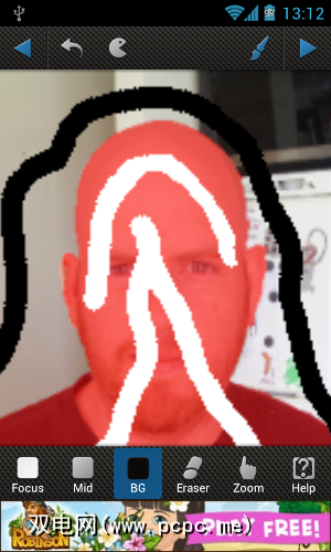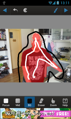 启动AfterFocus时,该应用程序可让您使用内置相机应用程序拍摄照片,或选择现有照片从一个专辑来工作。 “拍摄两张照片"选项在Android上尚未启用。它是为该应用的专业版保留的,该版本将于5月的某个时候在Google Play上发布。这项功能应该可以让After Focus通过拍摄照片,稍微移动相机并拍摄另一张照片来更容易地从背景中检测前景。