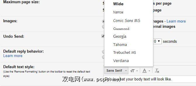 您无法更改Gmail用于收件箱的字体,但是可以更改在新邮件中使用的字体。为此,请打开设置。在常规标签上,您会看到标题为默认文本样式的部分。