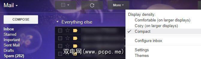 一个是Gmail的“显示密度"功能。这是一项基本功能,可根据屏幕大小,显示分辨率和浏览器窗口大小来调整收件箱的大小。通过将标签,邮件和其他元素靠近在一起以节省空间,它可以更改Gmail的视图。