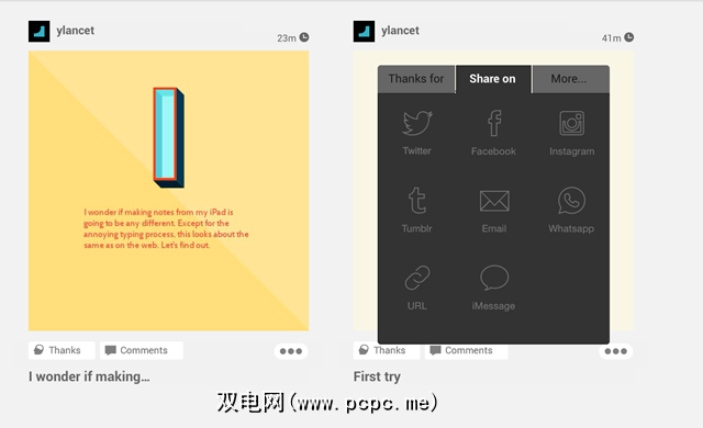 记事本不仅仅是与其他社交网络共享,它还渴望成为一个社交网络。我为什么说有抱负?因为现在,该网站的社交方面没有多少活动,但是随着社区的发展,这种情况可能会发生变化。