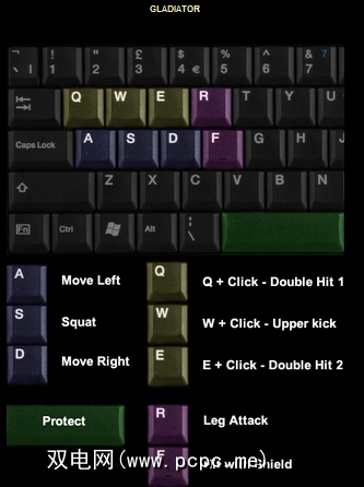 角斗士不同。如果您单击控件链接,则会看到将以不同方式控制角色的键盘键。请注意,任何显示为“ +单击"的内容都意味着您需要按住键并用鼠标左键单击。