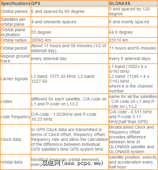 GLONASS和GPS之间存在一些显着差异