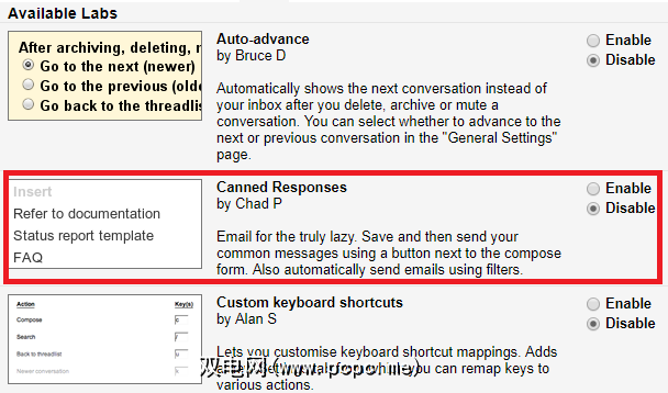罐头回应:很多用户转向罐头回应。这是实验室功能。您可以打开 Gear>设置>实验,然后点击功能名称旁边的启用按钮以将其打开。返回收件箱之前,请确保先点击保存更改。