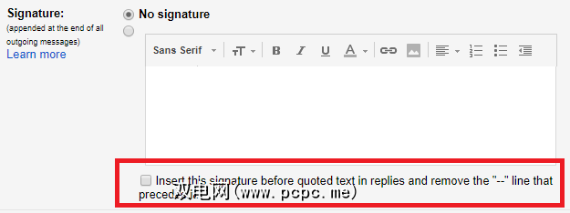 要解决此问题,请转到齿轮>设置>常规,然后向下滚动至签名部分。在您可以输入签名的窗口下方,选中我在答复中引用引号之前插入此签名旁边的复选框,并删除其前面的“ –"行。。