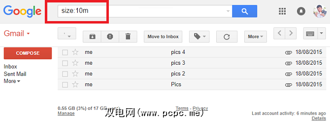 按大小排序:要查找大于a的电子邮件确定大小,请在搜索框中输入大小:[大小(以字节为单位)"。要以兆字节为单位进行搜索,请在数字中添加 M 。例如,大小:10M 将返回任何大于10 MB的电子邮件。