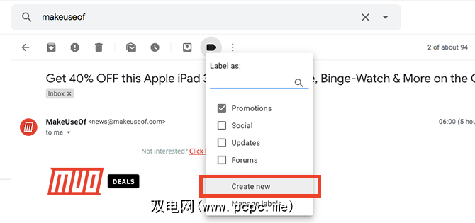 首先,选择收件箱中的任何邮件。打开后,您会在其上方看到一排图标。选择带有类似标签的图片的图片。这是Gmail的“标签"按钮。单击它以显示所有先前制作的标签的列表。选择创建新邮件来创建新邮件。