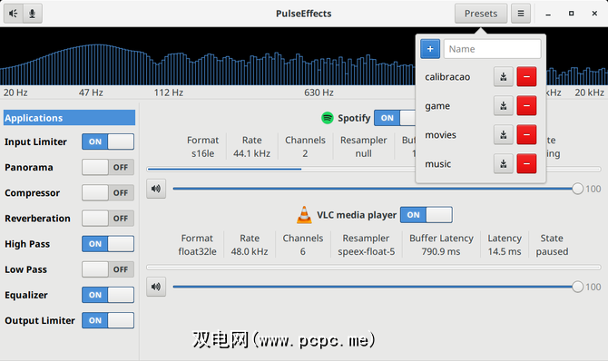 PulseEffects是压缩器,均衡器,输入限制器和混响。它使用PulseAudio,这是您的Linux桌面最有可能使用的声音服务器。这样一来,它便可以修改您正在运行的任何应用发出的声音。您可以操纵或所有声音,也可以按应用程序操纵。您可以在Flathub上找到该应用程序。
