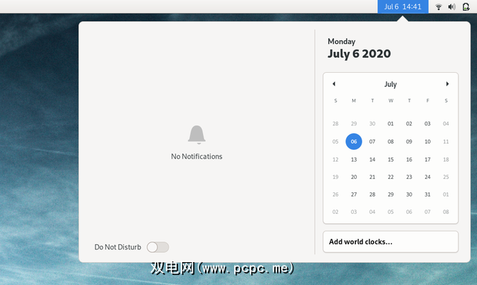 单击日期或时间将打开一个菜单,其中显示通知,您的日历和天气。您还可以启用“请勿打扰"模式。