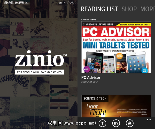 可从Windows Phone Store免费获得(诺基亚仅)用户可以利用免费提供的三本免费杂志来开始使用Zinio。提供各种主题的标题,从著名的出版物到您可能听不到的出版物。