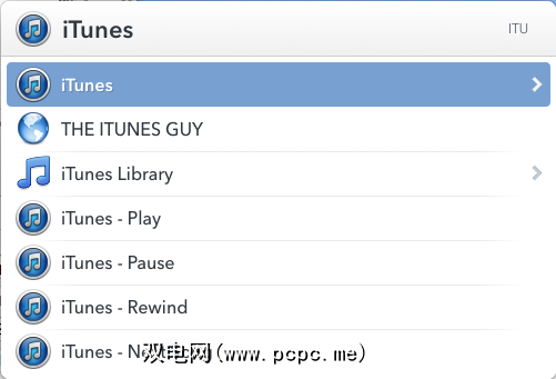 例如,如果键入“ iTunes"或缩写“ itu",LaunchBar会为您提供控制选项