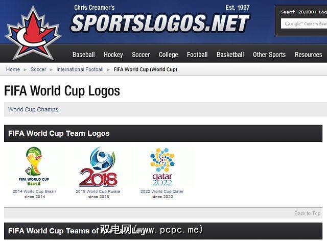 这个网站的优点是,一旦您检查了世界杯徽标,就可以探索来自各个体育项目和团队的徽标。