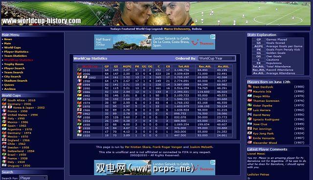 设计大师,但对于铁杆爱好者和偶而好奇的爱好者来说,这里有大量的信息,自1930年在乌拉圭锦标赛首次亮相以来,带您进入了每一届世界杯。原始统计数据特别有趣。不仅是体育狂热者,而且是过去社会感兴趣的任何人。