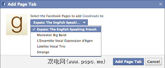 将应用程序添加到页面后,您需要导航至Facebook中的该页面,单击“ Goodreads"选项卡并选择您的设置。请注意,如果您单击“添加到页面",但没有看到列出的Facebook页面,则是因为该应用程序已添加到该页面(或者您不再是管理员)。