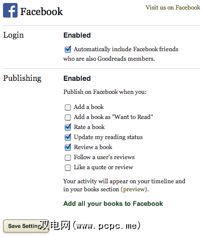 如果您需要随时调整设置,请通过Goodreads用户设置页面进行。例如,如果您与Facebook分享太多更新,而您希望将其数量降至最低。您还可以选择使用此设置选项卡将所有现有的Goodreads收藏集添加到Facebook。这将为Facebook带来大量数据,并快速设置时间轴的书籍部分。