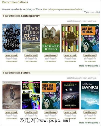Goodreads网站还具有专门的“建议"区域,如下所示: