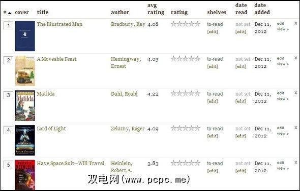 每本书在列表上都有一个“硬"(任意)位置,您可以手动编辑以设置自己的序列。您还可以按任何标题对列表进行排序-只需单击平均评分即可查看按其感知质量排序的未来读物。