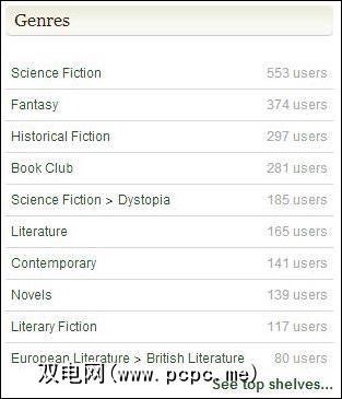 我很喜欢书页的一件事是流派侧边栏。 Goodreads网站并没有将所有文学作品强加于一种特定的流派,而是很好地向您展示了该书可能属于的流派,以及有多少人认为这是该书的流派: