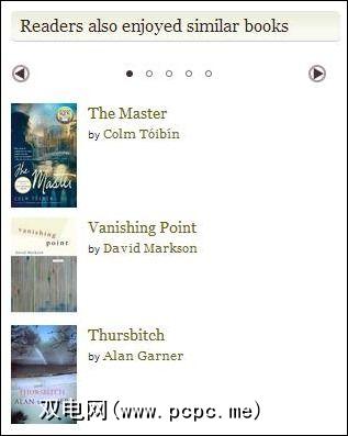 Goodreads提供了多种查找新书的方法。首先,每个书页都有一个“相似书"侧边小部件: