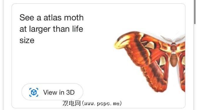 键入上面列出的任何名称都会显示出典型的结果,但是您还会看到标有查看的按钮3D 。您只需要点击该按钮,便可以通过AR在房间内或仅在空白背景下查看昆虫。