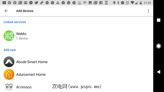 点击该按钮时,您会看到Google Assistant可以与之通信的大量设备品牌。