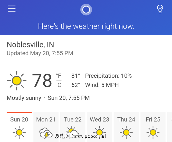 Cortana应用程序不仅做得更好,不仅可以获取准确的天气预报,而且可以更令人愉悦的格式显示。