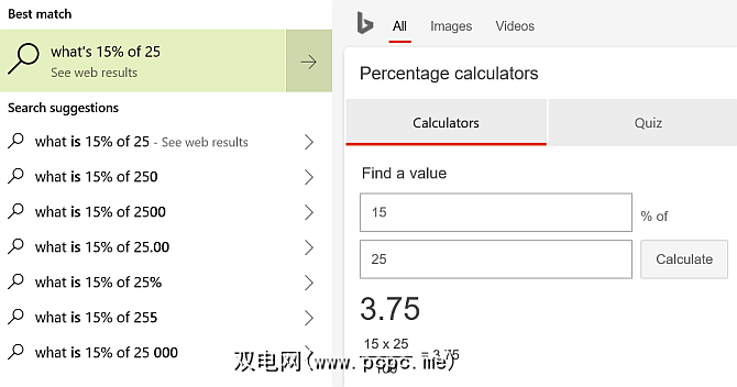 对于此任务,Cortana的桌面应用实际上是在窗口内而不是通过Bing网络搜索来执行请求。