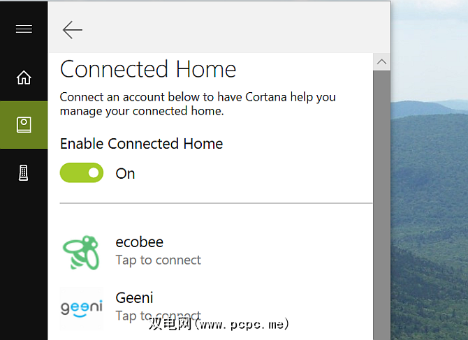 好消息是Cortana台式机更好。如果您进入Cortana笔记本,请依次点击管理技能和联网家庭,您会看到可从Cortana桌面应用程序控制的智能家居应用列表。