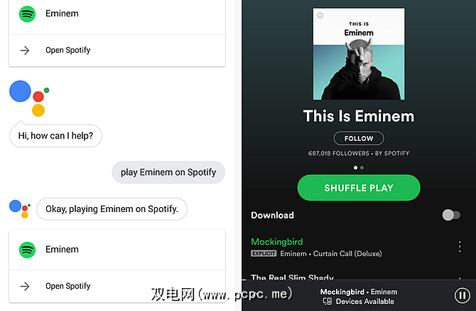 使用Google Assistant播放音乐非常简单。将其与Spotify,Google Play音乐或您喜欢的流媒体服务集成后,启动音乐就可以快速完成语音命令。