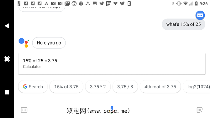 Google助手的另一个常用用法是在餐馆里快速计算提示。