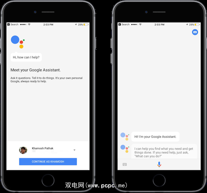 在iPhone上设置Google Assistant真的很容易。如果您已经在iPhone上使用过Google应用,并且已经登录,则会看到一个继续使用同一帐户的选项。然后,您将被带到Google Assistant的对话界面。这与Siri相似,只是没有黑暗骑士的感觉,而更多的是白天的脱口秀氛围。