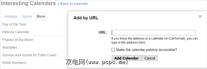 此外,您还可以按URL添加日历,这对于本地事件如作为您孩子的学校日历。并且,您还可以包括共享日历,以便您和您的配偶始终处于调动状态。