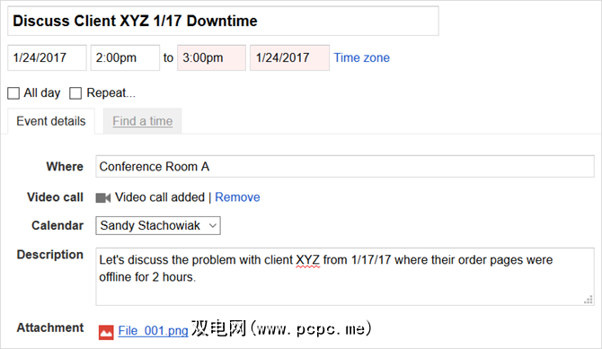 使用会议示例,如果您创建了一个名为“讨论上周问题"的事件而没有其他详细信息,则可能获得参与者的关注。在这种情况下,您至少应包括简短说明,简短议程以及有关此问题的任何相关文档或电子邮件。当然,标题应该更具体。