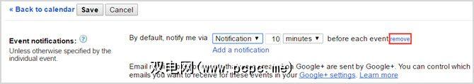 要完全删除通知,请按照上面在网络上执行的相同步骤进入“详细信息"页面所需的日历。然后点击删除链接以删除通知并点击 Save 按钮。