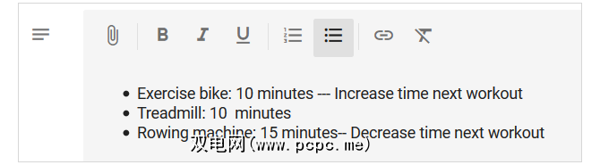 如上所述,在锻炼方案中,您可以添加项目符号列表或编号列表。因此,如果您要制作食物日记来关注所吃的东西,则可以每天添加餐点,并列出每个人的饮食清单。