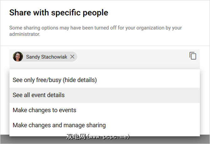 请记住,对于共享日历,您可以先调整其他人的访问权限,然后再共享。这样一来,他们只能查看事件或进行更改。