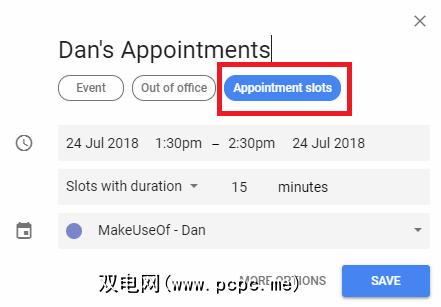 如果您有单位或学校的Google帐户,则可以使用约会插槽功能。