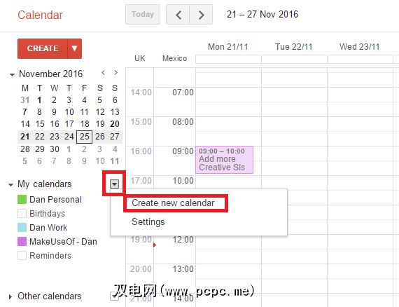 要制作专用的圣诞节日历,请点击<在屏幕左侧,点击strong>我的日历,然后选择创建新日历。