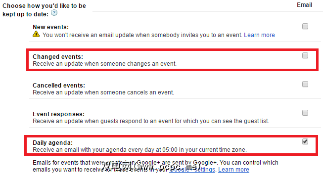 点击右上角的齿轮图标,然后选择设置。选择日历标签,然后点击圣诞节日历旁边的 Edit Notifications 链接。向下滚动到选择保持最新状态,然后选中每日议程旁边的复选框。