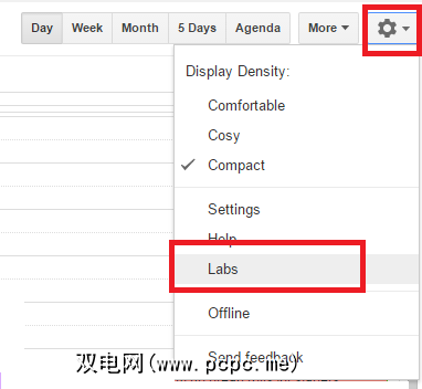 要访问实验性Lab应用,请点击齿轮图标,然后从菜单中选择实验室