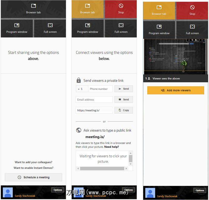 为了与同事,客户或老板共享屏幕,CrankWheel是Chrome的绝佳扩展。您可以在几秒钟内共享浏览器选项卡,程序窗口或整个屏幕。只需单击工具栏按钮,选择要共享的按钮,然后再次单击该按钮即可开始。
