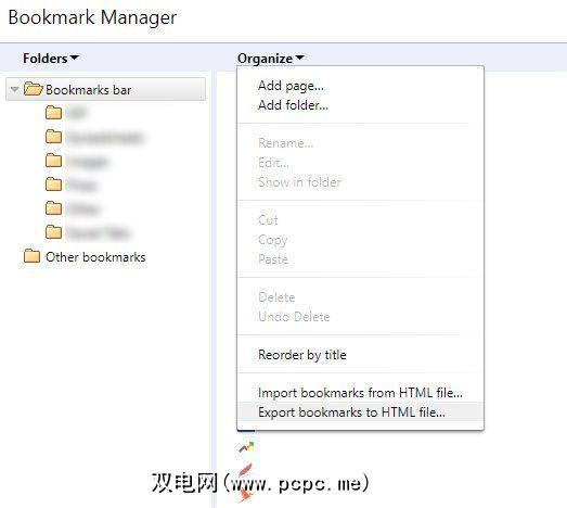 如果您想以更快的方式查看和导出书签,请按照以下步骤操作: