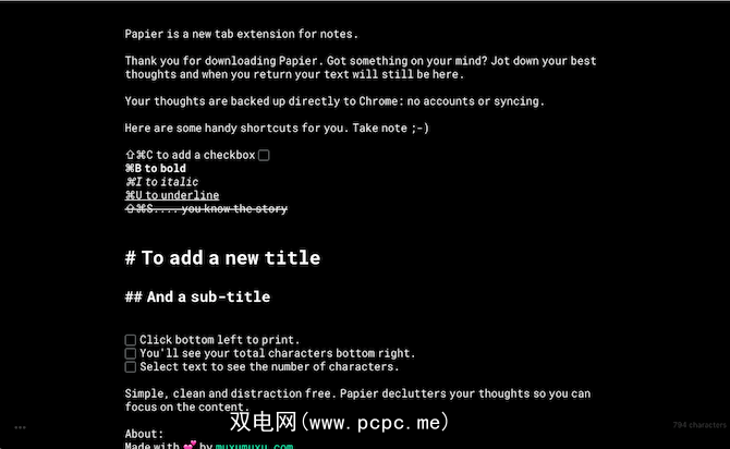 Papier是一个简单的扩展,可以在“新标签"页面上快速记录笔记。它提供简洁,实用的设计,非常适合匆忙时记下想法。该扩展程序也可以脱机访问,甚至在需要时还提供了许多编辑工具。那些深夜会议也有黑暗模式。