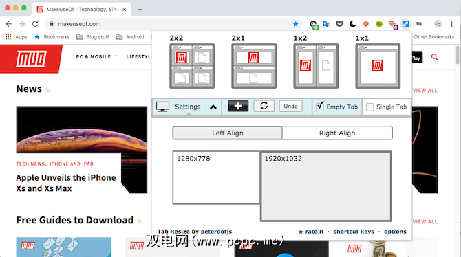 标签调整大小,顾名思义,是用于将窗口调整为布局大小。该扩展程序的便捷菜单使您可以轻松切换到不同的排列方式,例如并排放置两个窗口或将四个窗口悬挂在每个角落。
