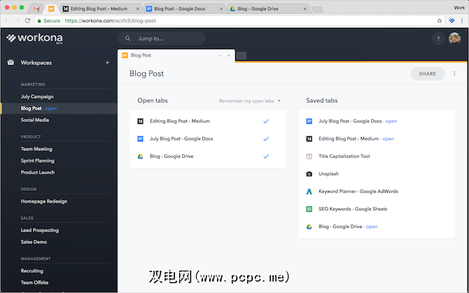 如果您的工作主要围绕互联网服务和浏览器进行,那么您会发现在数十个窗口和选项卡之间进行切换非常麻烦。输入Workona,这是一个免费的扩展程序,可将桌面工作区带到Google Chrome。